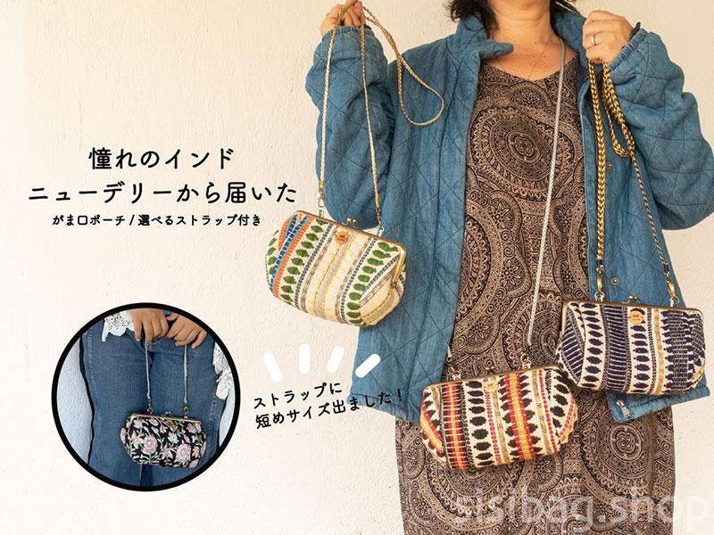 【ご予約商品:お届けは11月14日(金)以降の予定です】がま口ポーチ/インドコットン・ブロックプリント(取り外し可能な持ち手付)