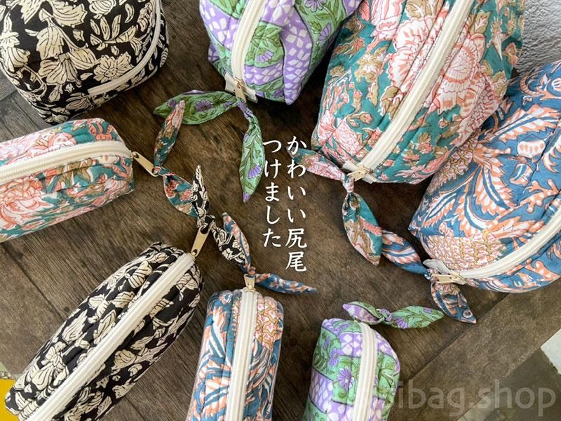 【ご予約商品:お届けは11月28日(金)以降の予定です】インドコットン・ブロックプリント(リボン付き)ポーチ(大)