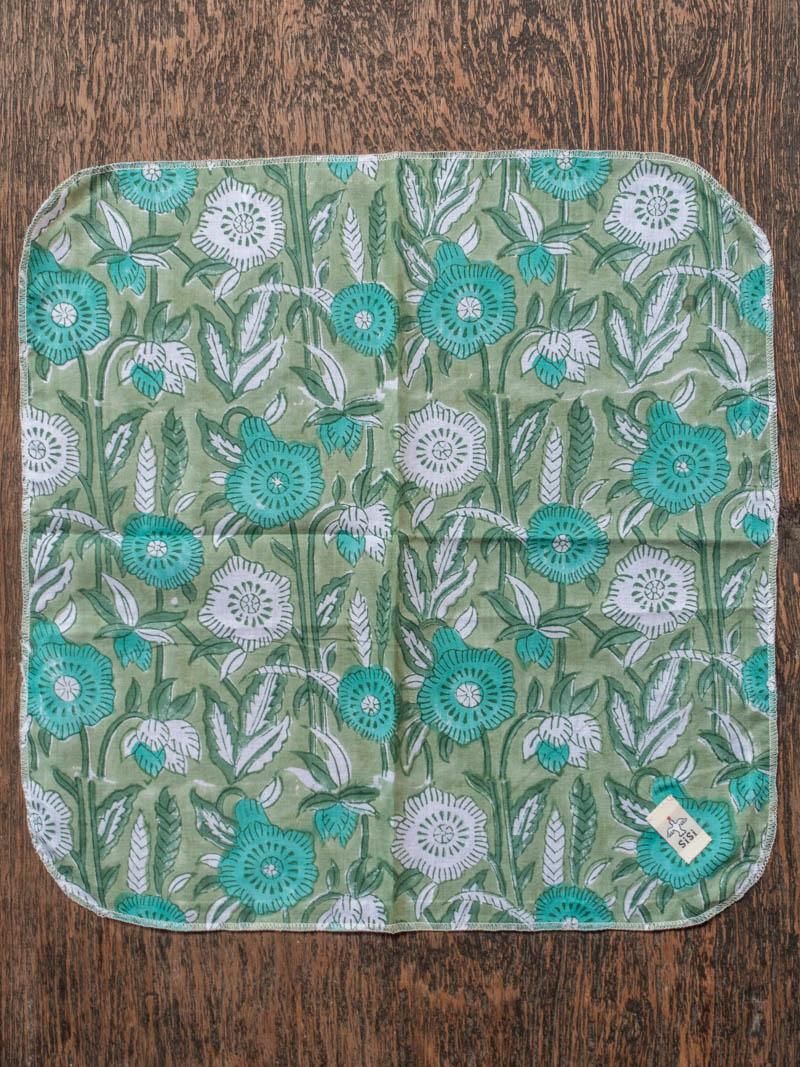 sisiがお願いしているいつものインド・ジャイプールの工房から新柄ブロックプリントが届き、この薄い肌触りを生かしてハンカチにしました。