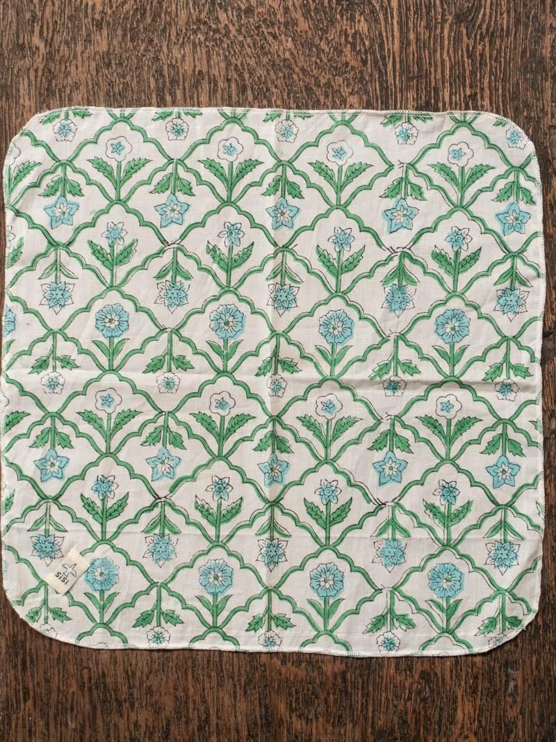 sisiがお願いしているいつものインド・ジャイプールの工房から新柄ブロックプリントが届き、この薄い肌触りを生かしてハンカチにしました。