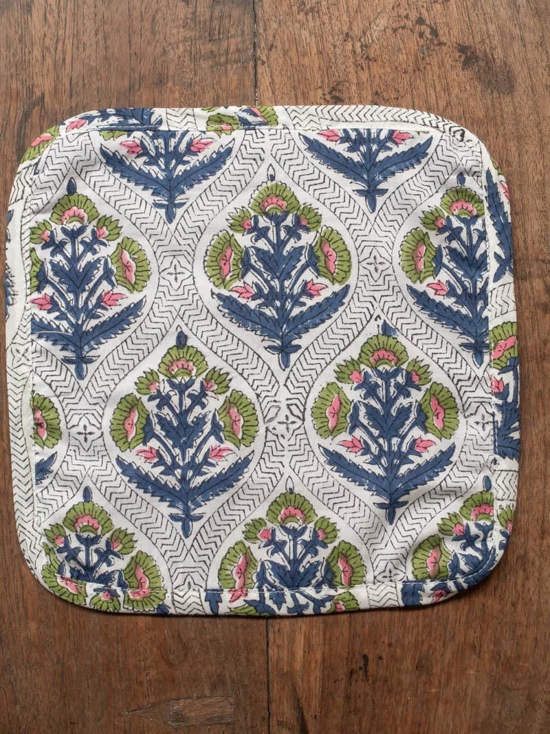【ご予約商品:お届けは10月28日(火)以降の予定です】片面インドコットン・ブロックプリントのタオルハンカチ