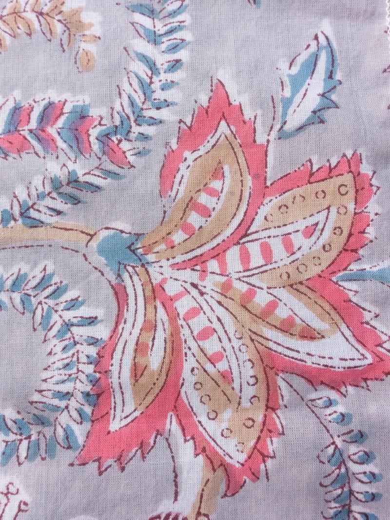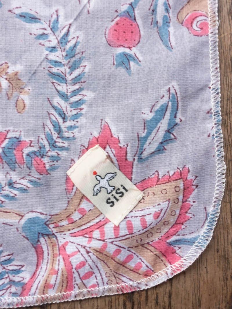 sisiがお願いしているいつものインド・ジャイプールの工房から新柄ブロックプリントが届き、この薄い肌触りを生かしてハンカチにしました。