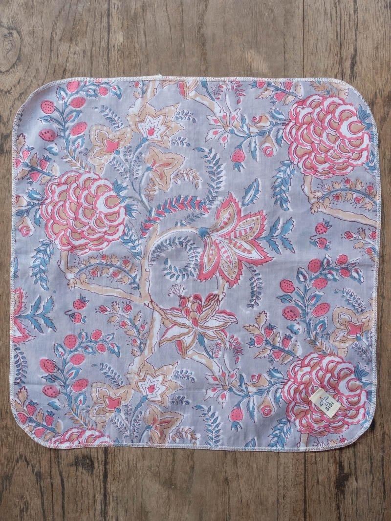 【ご予約商品:お届けは11月28日(金)以降の予定です】インドブロックプリント 薄手コットンハンカチ