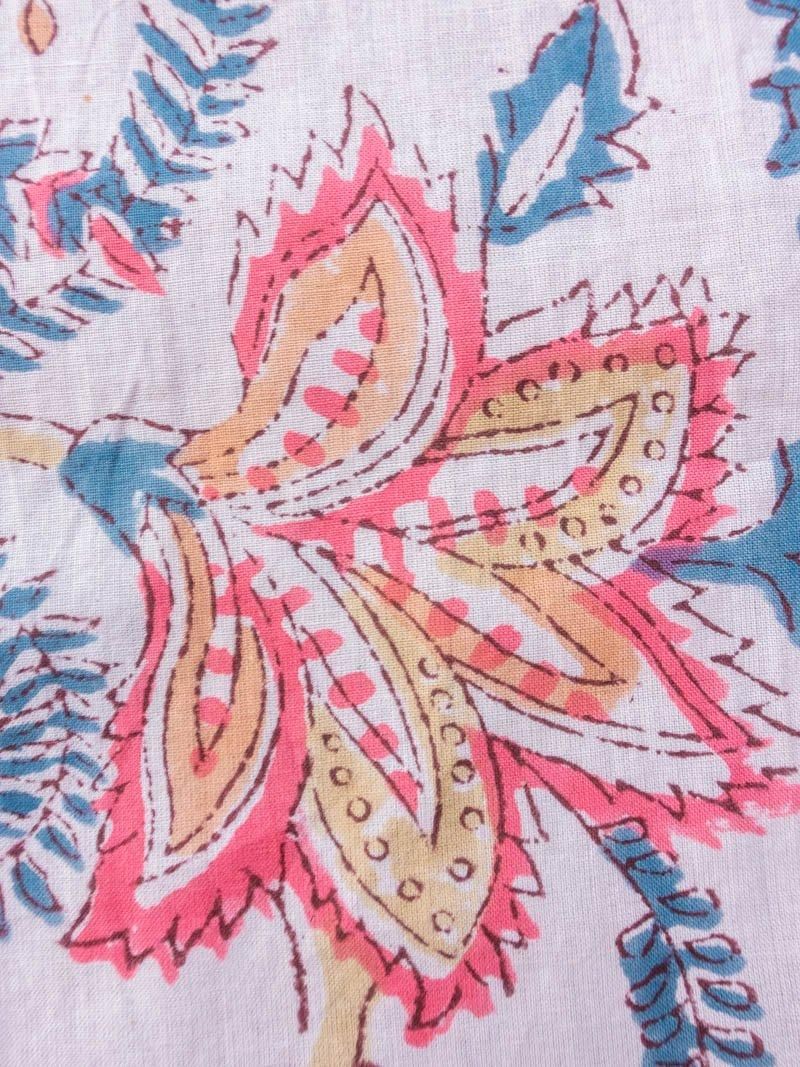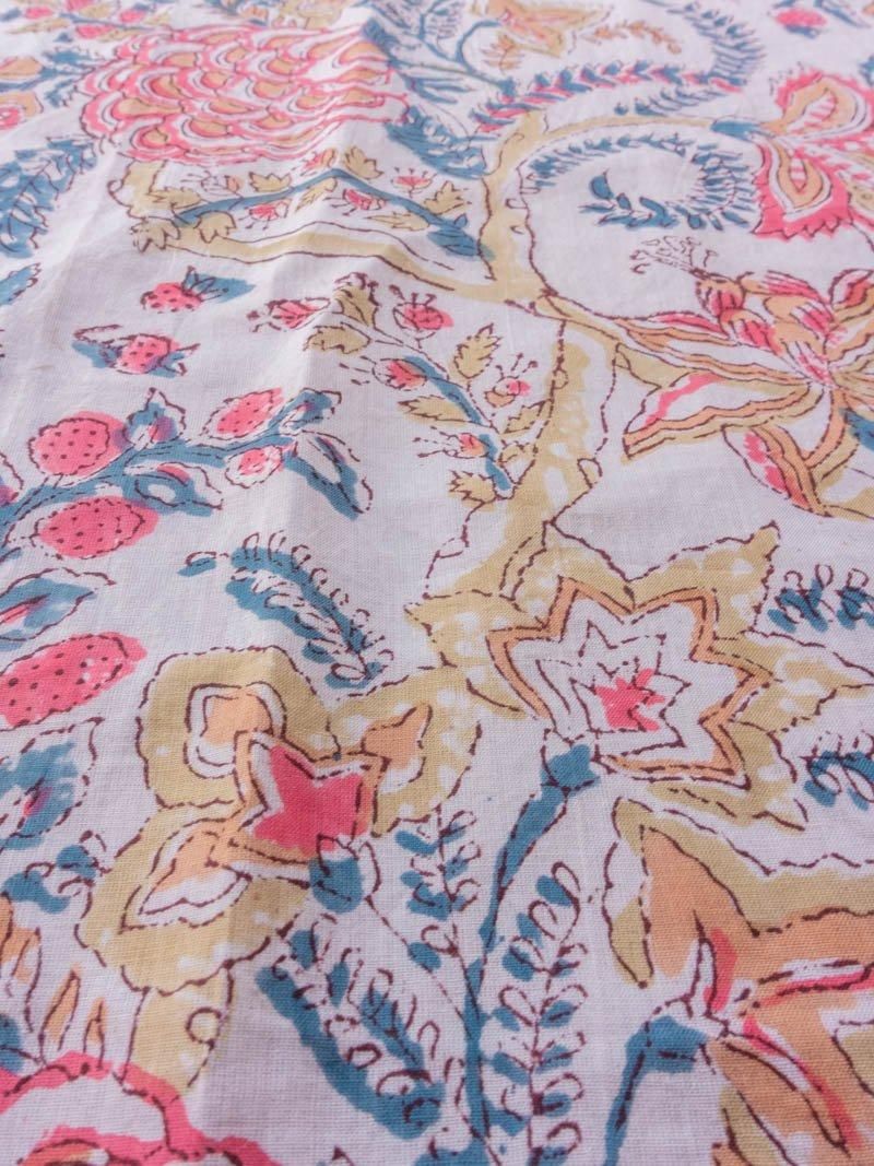 インド・ジャイブール郊外で作られるこれらのブロックプリント布は、全て木製スタンプを使ったハンドメイドの染め物です。無地部分の染めムラ、にじみはブロックプリントの"特性"です。