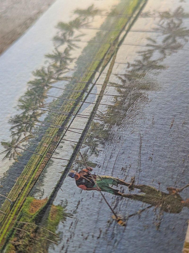農作業するBapak(年上や目上の男性に使われる総称、日本語のおじさん、の様な感覚です)と水田に鏡の様に映る椰子の木たち。
