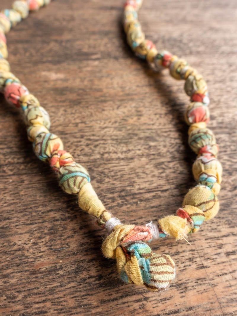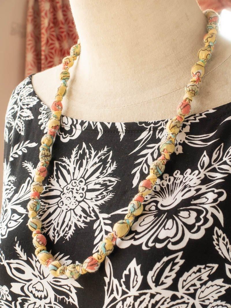 sisiで人気のインド・ジャイプール地方で作られる木製スタンプでひとつずつ色を乗せて染めていく『ブロックプリント』の生地をもっと身近に感じたくてアクセサリーを作りました。sisiで人気のの生地をたっぷり贅沢に使ったファブリックネックレスが登場です。手作りなので、ひとつひとつが世界にひとつだけのデザイン。ウッドビーズを包んで作っているので軽くて温かみがあります。