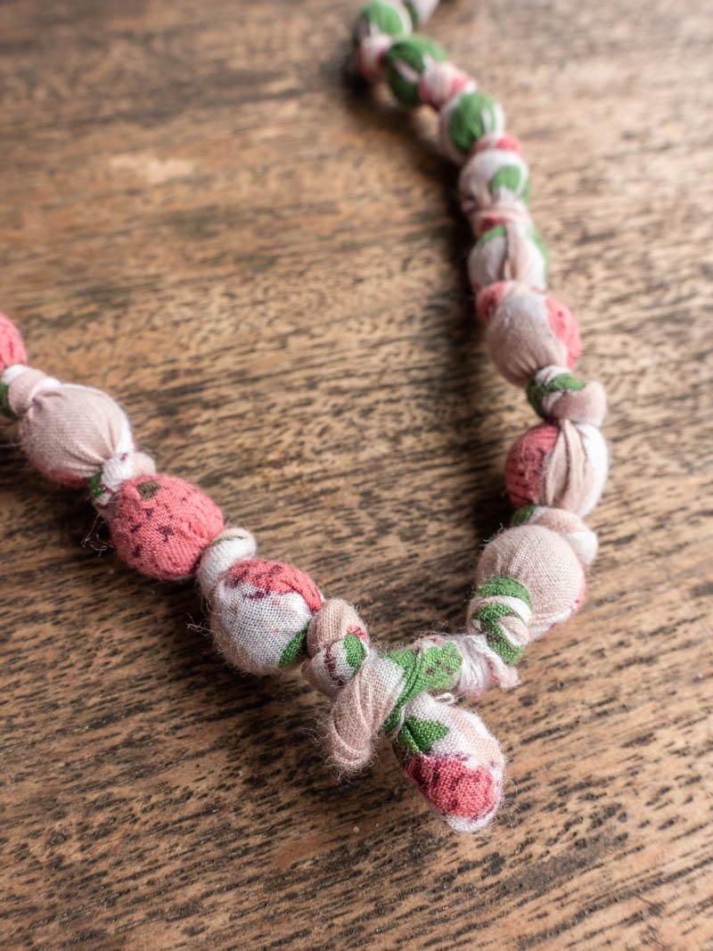 sisiで人気のインド・ジャイプール地方で作られる木製スタンプでひとつずつ色を乗せて染めていく『ブロックプリント』の生地をもっと身近に感じたくてアクセサリーを作りました。sisiで人気のの生地をたっぷり贅沢に使ったファブリックネックレスが登場です。手作りなので、ひとつひとつが世界にひとつだけのデザイン。ウッドビーズを包んで作っているので軽くて温かみがあります。
