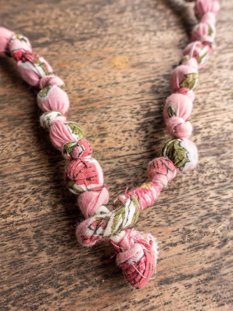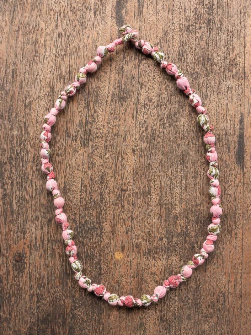 sisiで人気のインド・ジャイプール地方で作られる木製スタンプでひとつずつ色を乗せて染めていく『ブロックプリント』の生地をもっと身近に感じたくてアクセサリーを作りました。sisiで人気のの生地をたっぷり贅沢に使ったファブリックネックレスが登場です。手作りなので、ひとつひとつが世界にひとつだけのデザイン。ウッドビーズを包んで作っているので軽くて温かみがあります。