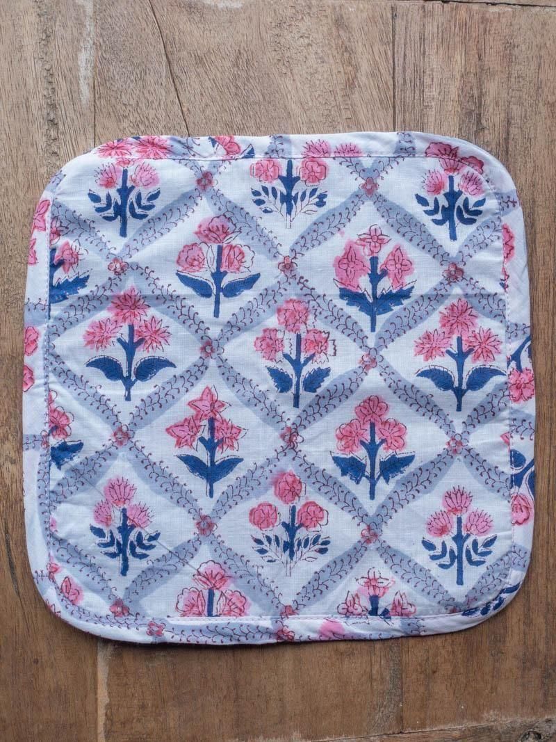 【ご予約商品:お届けは11月28日(金)以降の予定です】片面インドコットン・ブロックプリントのタオルハンカチ