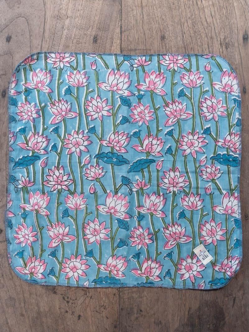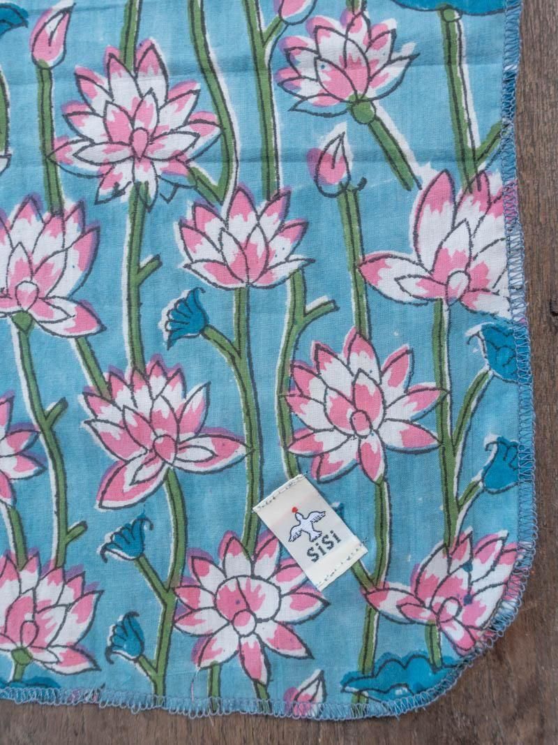 sisiがお願いしているいつものインド・ジャイプールの工房から新柄ブロックプリントが届き、この薄い肌触りを生かしてハンカチにしました。
