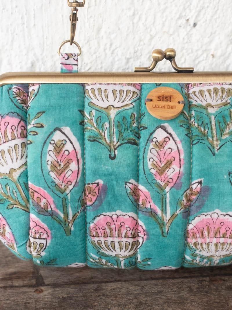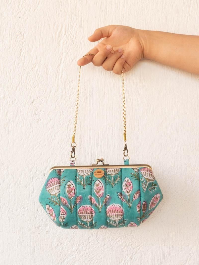 【ご予約商品:お届けは12月17日(水)前後の予定です】がま口ポーチ/インドコットン・ブロックプリント(取り外し可能な持ち手付)