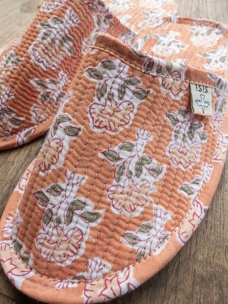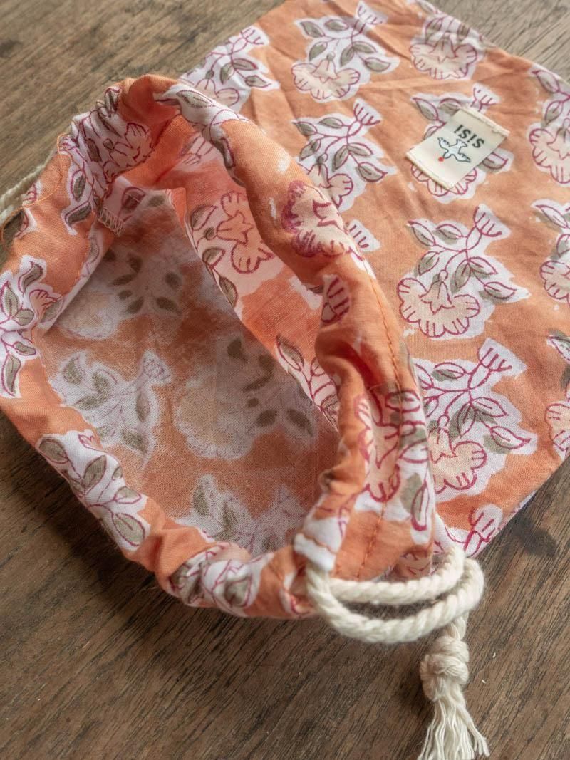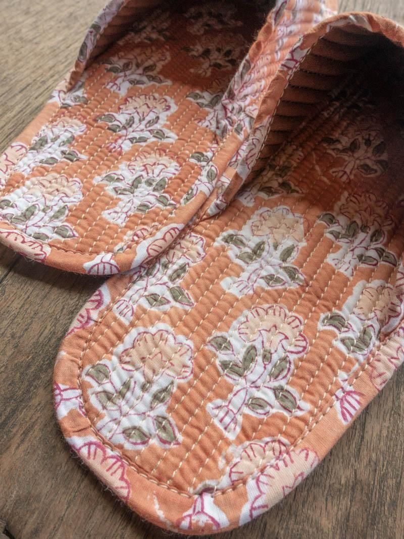 【ご予約商品:お届けは10月28日(火)以降の予定です】インドコットン・ブロックプリント「折りたたみスリッパ+巾着セット」