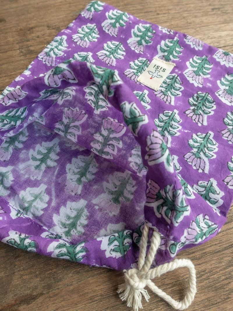 【ご予約商品:お届けは10月28日(火)以降の予定です】インドコットン・ブロックプリント「折りたたみスリッパ(大きめサイズ)+巾着セット」