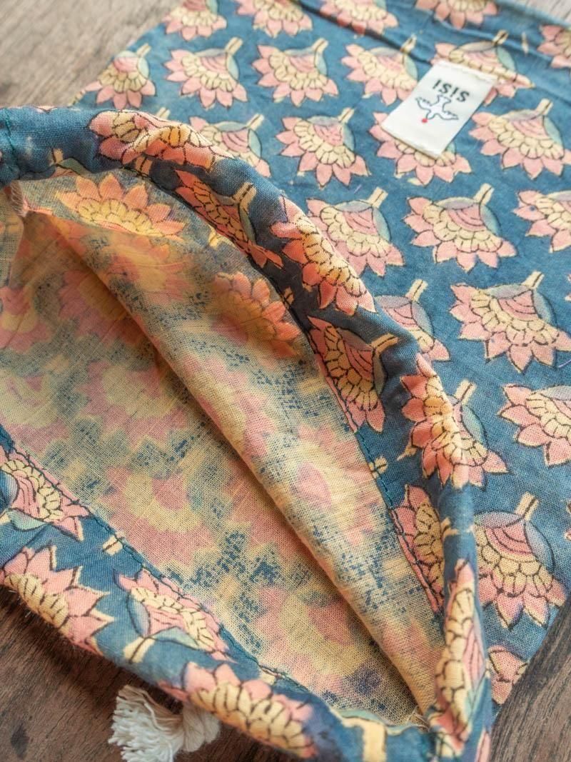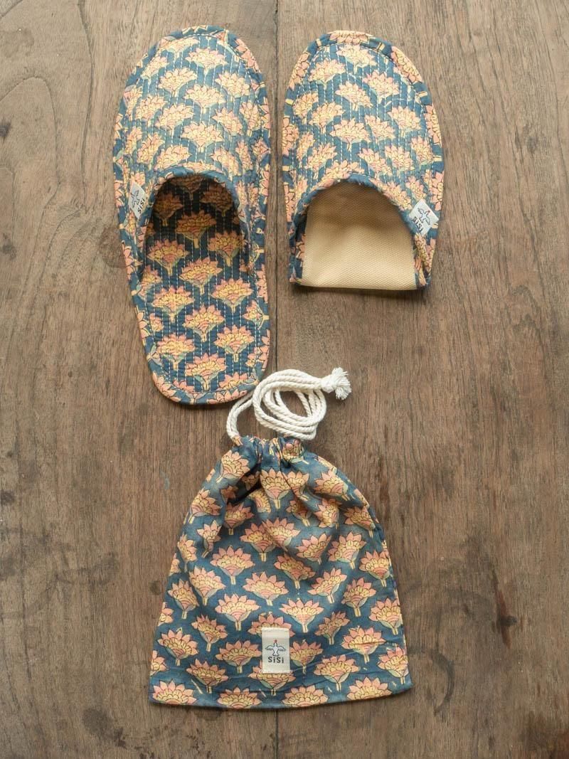 【ご予約商品:お届けは10月28日(火)以降の予定です】インドコットン・ブロックプリント「折りたたみスリッパ(大きめサイズ)+巾着セット」