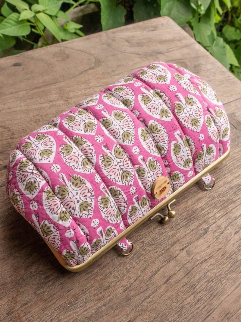 【ご予約商品:お届けは1月31日(土)以降の予定です】がま口ポーチ/インドコットン・ブロックプリント(取り外し可能な持ち手付)